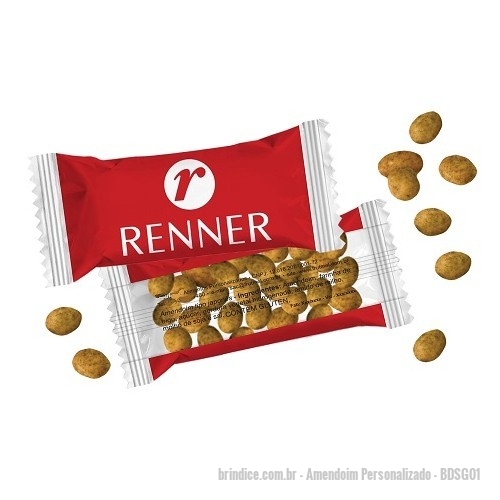 Amendoim Personalizado - BDSG01 - Amendoim Japonês Crocante. Sabor: Amendoim com cobertura salgada. Cada Sachê Contém Aprox.: 10gr Embalagem: Branca Pérola, Chapada ou Laminada Frente e Transparente Verso. Fechamento da Embalagem: Flow Pack Tamanho da Embalagem: 95 x 40 mm Tamanho Máximo da Impressão: 73 x 30 mm (centralizado) Cores de Impressão: Sem limites de cores Validade: 06 meses Ingredientes: Amendoim, Farinha de trigo, Açúcar, Gordura Vegetal Hidrogenada, Amido de Milho, Molho de soja e Sal. Contém Glúten. Alérgicos: Não Contém Leite e Derivados. - 134951 - Portal de Brindes Personalizados | Guia Bríndice 38 Anos - Amendoim
