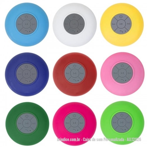 Caixa de som Personalizada - ALL12926 - Caixa de Som Multimídia à prova D’Água emborrachada com ventosa(pode ser removida). Possui play/pause no centro e botão com desenho de telefone deve ser apertado para atender ligações. Compátivel com Iphone, Ipad, Ipod, aparelhos de celular e tablets. Acompanha cabo. Altura : 8,5cm Largura : 8,5 cm Espessura : 4,9 cm - 131590 - Portal de Brindes Personalizados | Guia Bríndice 38 Anos - Caixa de som