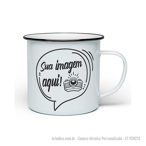 Caneca térmica Personalizada - ST FCN213 - Caneca de alumínio branca personalizada. Confeccionada em alumínio, com capacidade de 360 ml ela possui camada esmaltada própria para receber a aplicada de transfer na personalização da logomarca - 122094 - Portal de Brindes Personalizados | Guia Bríndice 38 Anos - Caneca térmica