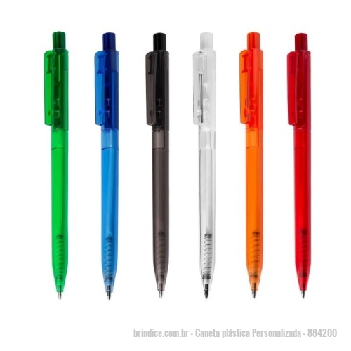Caneta plástica Personalizada - 884200 - Caneta plástica esferográfica retrátil escrita em azul - 166614 - Portal de Brindes Personalizados | Guia Bríndice 38 Anos - Caneta plástica