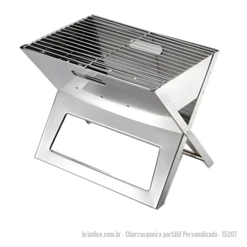 Churrasqueira portátil Personalizada - 15207 - Prepare um churrasco delicioso com amigos e familiares, onde quer que você esteja, com a nossa Churrasqueira Portátil em Aço Inoxidável. Compacta, prática e fácil de usar, ela é a companheira perfeita para seus momentos de lazer. Características Aço inoxidável resistente: Fabricada em aço inoxidável de alta qualidade, a churrasqueira é resistente à corrosão e ao calor, garantindo durabilidade e segurança no uso. Design dobrável e portátil: A churrasqueira possui um design inteligente que permite dobrá-la e transportá-la com facilidade para qualquer lugar. A alça integrada facilita o transporte, tornando-a ideal para camping, piqueniques, praias e muito mais. Duas grelhas: A churrasqueira possui duas grelhas espaçosas, perfeitas para preparar carnes, legumes e outros alimentos de forma prática e eficiente. Sistema de encaixe prático: A montagem da churrasqueira é rápida e descomplicada, graças ao sistema de encaixe inteligente. Em poucos minutos, você terá sua churrasqueira pronta para - 171266 - Portal de Brindes Personalizados | Guia Bríndice 38 Anos - Churrasqueira portátil