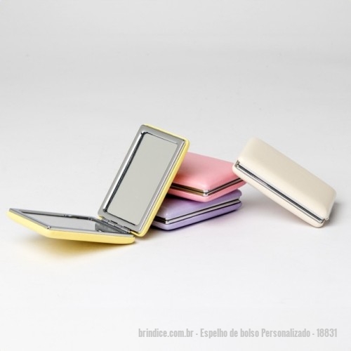 Espelho de bolso Personalizado - 18831 - Realce a beleza com nosso espelho duplo! Com uma face convencional e outra com aumento, ele é perfeito para conferir o visual ou caprichar na make. Seu revestimento em PU oferece praticidade e um toque sofisticado para os cuidados diários. - 168926 - Portal de Brindes Personalizados | Guia Bríndice 38 Anos - Espelho de bolso