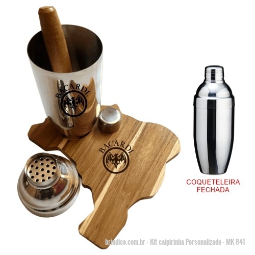 Kit caipirinha Personalizado - MK 841 - Kit caipirinha tábua formato mapa do Brasil, socador e coqueteleira 750ml multifuncional. Gravação da logo a laser na tábua, socador e no copo da coqueteleira. Despachamos com frete pago para Sul, Sudeste e Centro Oeste. - 168560 - Portal de Brindes Personalizados | Guia Bríndice 38 Anos - Kit caipirinha