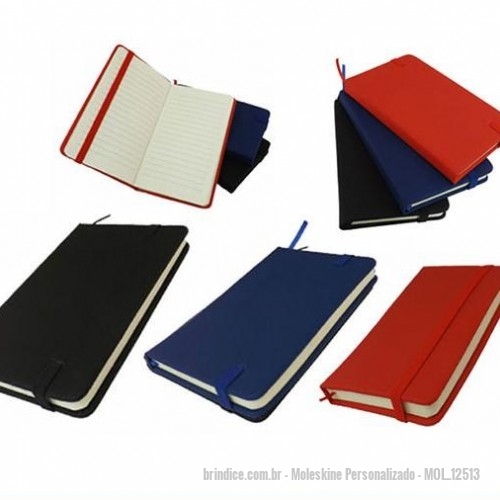 Moleskine Personalizado - MOL_12513 - Caderneta do tipo Moleskine com folhas pautadas e não pautadas. Personalização em silkscreen. - 42942 - Portal de Brindes Personalizados | Guia Bríndice 38 Anos - Moleskine