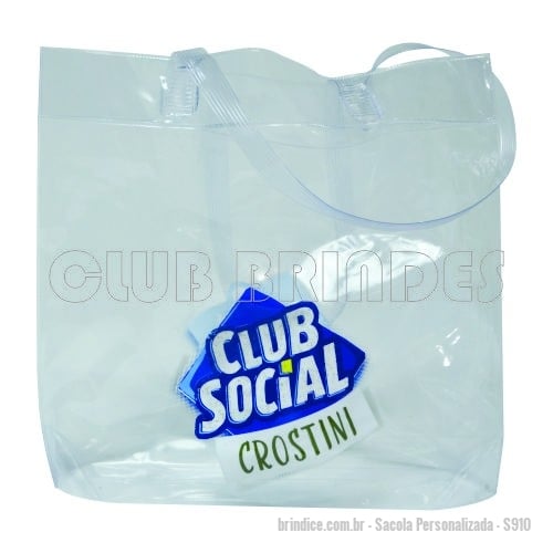 Sacola Personalizada - S910 - Sacola transparente em PVC cristal com alça dupla de ombro - Gravação já incluso 1 cor. Tamanho: 40 X 34 X 9 cm - 93070 - Portal de Brindes Personalizados | Guia Bríndice 38 Anos - Sacola