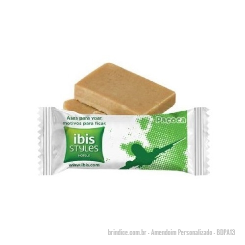 Amendoim Personalizado - BDPA13 - Paçoca Consistente em Formato de Tablete Retangular. Sabor: Amendoim Embalagem: Branco Pérola e Chapada Fechamento da Embalagem: Flow Pack Tamanho da Embalagem: 95 x 40 mm Tamanho Máximo da Impressão: 73 x 40 mm (centralizado) Cores de Impressão: Sem limites de cores Validade: 06 meses Ingredientes: Amendoim, Açúcar, Glucose de Milho e Sal. Não Contém Glúten. Alérgicos: Não Contém Leite e Derivados. - 134952 - Portal de Brindes Personalizados | Guia Bríndice 38 Anos - Amendoim
