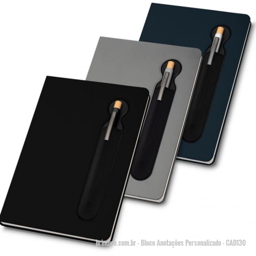 Bloco Anotações Personalizado - CAD130 - Caderno de anotações com suporte para caneta, capa dura em PU, miolo 80 folhas pautadas na cor bege. NÃO ACOMPANHA CANETA. - 156059 - Portal de Brindes Personalizados | Guia Bríndice 38 Anos - Bloco Anotações