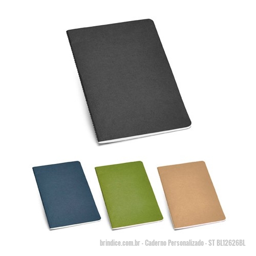 Caderno Personalizado - ST BL12626BL - Mini Caderno Personalizado, Dimensões 140 x 210 mm, Material Papel reciclável, Cor Preto, verde, azul e natural,Bloco 40 folhas pautadas - 143102 - Portal de Brindes Personalizados | Guia Bríndice 38 Anos - Caderno