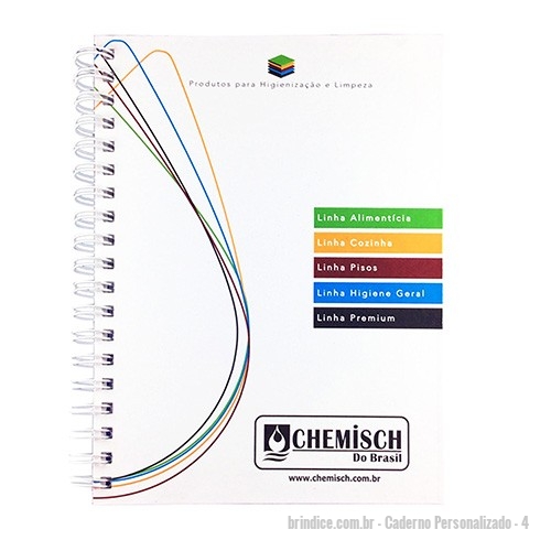 Caderno Personalizado - 4 - Fabricação própria, cadernos personalizados do seu jeito.Tamanhos 15x21,18x25 e 21x28 cm. Capa impressa em 4 cores, miolo com 96 folhas personalizadas em uma cor (frente e verso iguais) e dados pessoais e calendário, podem acompanhar lâminas de publicidade. Fechamento em wire-o silver, preto ou branco (consultar outras cores). - 83433 - Portal de Brindes Personalizados | Guia Bríndice 38 Anos - Caderno