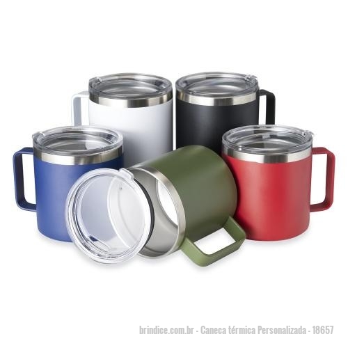 Caneca térmica Personalizada - 18657 - Caneca térmica de inox 450ml com parede dupla e tampa com acesso ao bocal. - 142694 - Portal de Brindes Personalizados | Guia Bríndice 38 Anos - Caneca térmica