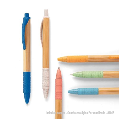 Caneta ecológica Personalizada - 81013 - Esferográfica em bambu com clipe, antideslizante e elementos coloridos em fibra de trigo e ABS. Até 1,5 km de escrita. 11 x 142 mm - 149819 - Portal de Brindes Personalizados | Guia Bríndice 38 Anos - Caneta ecológica