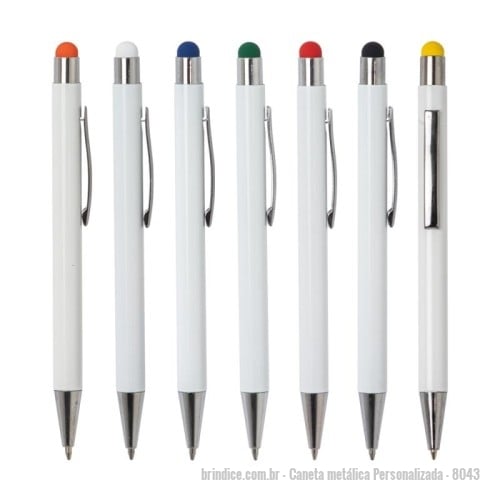 Caneta metálica Personalizada - 8043 - Caneta metálica com touch screen, carga esferográfica azul e acionamento por clique. - 168924 - Portal de Brindes Personalizados | Guia Bríndice 38 Anos - Caneta metálica
