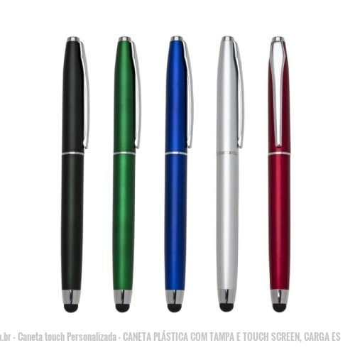 Caneta touch Personalizada - CANETA PLÁSTICA COM TAMPA E TOUCH SCREEN, CARGA ES - Caneta plástica com tampa e touch screen, carga esferográfica azul. - 164716 - Portal de Brindes Personalizados | Guia Bríndice 38 Anos - Caneta touch
