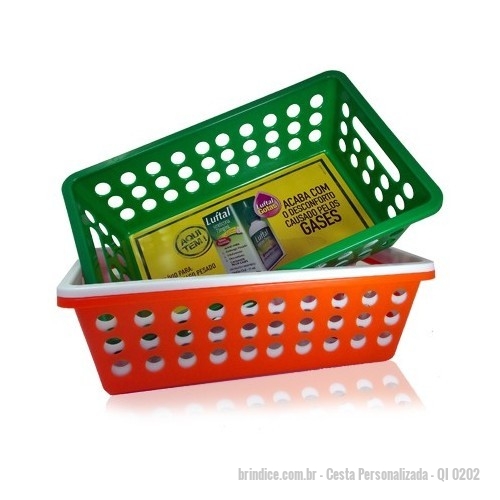 Cesta Personalizada - QI 0202 - Material: Polipropileno Atoxico. Dimensões: 27,5 cm comp x 19 cm alt x 10 cm prof. - 130895 - Portal de Brindes Personalizados | Guia Bríndice 38 Anos - Cesta