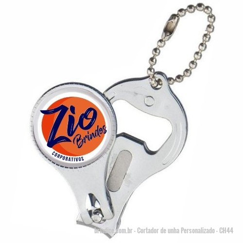 Cortador de unha Personalizado - CH44 - Chaveiro Abridor 3 em 1 – CH44 Chaveiro multiuso metálico, com opção de ser chaveiro cortador e abridor, pode ser personalizado através de etiqueta resinada. - 156329 - Portal de Brindes Personalizados | Guia Bríndice 38 Anos - Cortador de unha