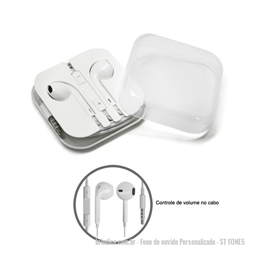 Fone de ouvido Personalizado - ST FONE5 - Fone de ouvido Personalizado para Celular, Com controle de volume e design confortável, o fone de ouvido personalizado para celular tem ótimo custo, grande aderência promocional e amplo espaço para personalização de marca, ampliando a exposição de pr - 143024 - Portal de Brindes Personalizados | Guia Bríndice 38 Anos - Fone de ouvido