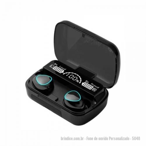 Fone de ouvido Personalizado - 5048 - Fone de ouvido bluetooth com comandos touch e case carregador. Com display de bateria e fechamento magnético, o case pode ser utilizado também como um power bank de baixa capacidade para emergências . Material plástico. Acompanham 2 pares de eartips - 149851 - Portal de Brindes Personalizados | Guia Bríndice 38 Anos - Fone de ouvido