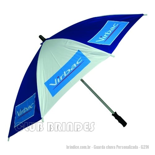 Guarda chuva Personalizada - G21N - Guarda Chuva Portaria/Recepção Especial de Alumínio, varetas em aço, manual, cabo reto ou curvo com manopla de plástico, tecido nylon resinado. Disponível em várias cores. Gravação da logomarca em 1 cor em 2 gomos já inclusa. Tamanho: Disponíveis nos tamanhos de 1,20 m, 1,40, e 1,60 de diâmetro. - 55184 - Portal de Brindes Personalizados | Guia Bríndice 38 Anos - Guarda chuva