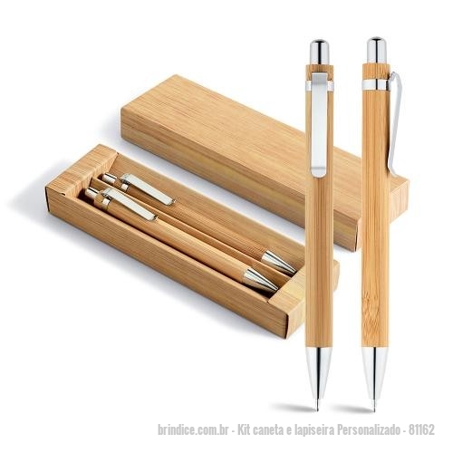 Kit caneta e lapiseira Personalizado - 81162 - Conjunto de esferográfica e lapiseira. Bambu. Esferográfica: 1,5km de escrita. Lapiseira: grafite 0.7. Em estojo de cartão. ø11 x 138 mm | Estojo: 171 x 53 x 23 mm - 142438 - Portal de Brindes Personalizados | Guia Bríndice 38 Anos - Kit caneta e lapiseira