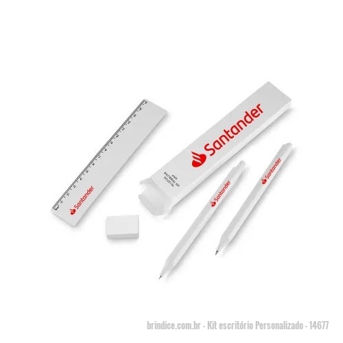 Kit escritório Personalizado - 14677 - Kit escritório antibacteriano, contém: Caneta plástica, lapiseira plástica, régua plástica de 15cm, e borracha. Personalização em Silkscreen na régua, caneta, lapiseira e embalagem. - 157069 - Portal de Brindes Personalizados | Guia Bríndice 38 Anos - Kit escritório