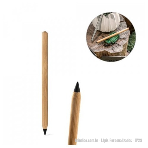 Lápis Personalizados - LP29 - Caneta sem Tinta com Ponta de Liga Metálica em bambu Personalizável - 164506 - Portal de Brindes Personalizados | Guia Bríndice 38 Anos - Lápis
