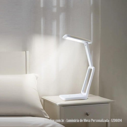 Luminária de Mesa Personalizada - IZ06014 - Luminária retrátil recarregável com 14 leds e funcionamento touch, material plástico. Contém três estágios de iluminação com regulagem de intensidade touch: luz fria (branca), luz quente (amarela) e luz mista (branca e amarela). Base com botão para ligar e desligar e área para encaixe na parte inferior. Acompanha uma bateria de lítio e cabo USB para carregamento - 158284 - Portal de Brindes Personalizados | Guia Bríndice 38 Anos - Luminária de Mesa