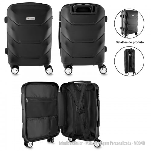 Mala de viagem Personalizada - MC048 - Mala viagem média ABS (Estireno de acrilonitrilo e butadieno). Forrada em poliester, Sistema de carrinho de aço, Alça de mão e Quatro rodas de 360 graus. Modelo leve, elegante e moderno, ideal para suas viagens. Gravação laser na plaquinha de metal. Ótima opção para eventos corporativos e campanhas de marketing. - 149120 - Portal de Brindes Personalizados | Guia Bríndice 38 Anos - Mala de viagem