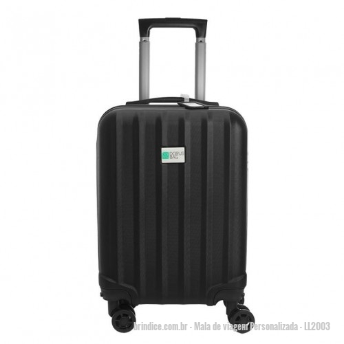 Mala de viagem Personalizada - LL2003 - Gravação a Laser na plaquinha de aço escovado • 4 Rodas 360º • Estrutura rígida arredondada • Cadeado acoplado com senha • Alça de mão retrátil na parte superior • Puxador telescópico com botão liberador para regulagem de altura • 4 suportes laterais emborrachados • Forro Estampado • Elástico divisor • Separador de roupas intimas• Material ABS •Tamanho 55 * 36 *24 cm Peso 2,7 KG, Suporta 10 KG - 150463 - Portal de Brindes Personalizados | Guia Bríndice 38 Anos - Mala de viagem
