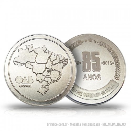 Medalha Personalizada - MK_MEDALHA_03 - Medalha OAB em metal latão, sistema de estampo, folheada a níquel, alto e baixo relevo. Fosco e polido. - 120733 - Portal de Brindes Personalizados | Guia Bríndice 38 Anos - Medalha