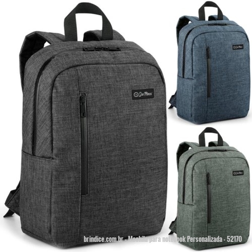 Mochila para notebook Personalizada - 52170 - A mochila ideal para quem busca praticidade e proteção para seu notebook e tablet! Feita em 600D de alta densidade, ela garante resistência e durabilidade. Seu compartimento principal é forrado e conta com 2 divisórias almofadadas, protegendo seu computador de até 14” e seu tablet de até 9.7”. Além disso, possui 1 bolso frontal e 1 lateral, perfeitos para guardar itens extras com facilidade. As alças e a parte posterior também são almofadadas, proporcionando conforto durante o uso. Com capacidade de 12 litros, ela é perfeita para o dia a dia. - 171049 - Portal de Brindes Personalizados | Guia Bríndice 38 Anos - Mochila para notebook