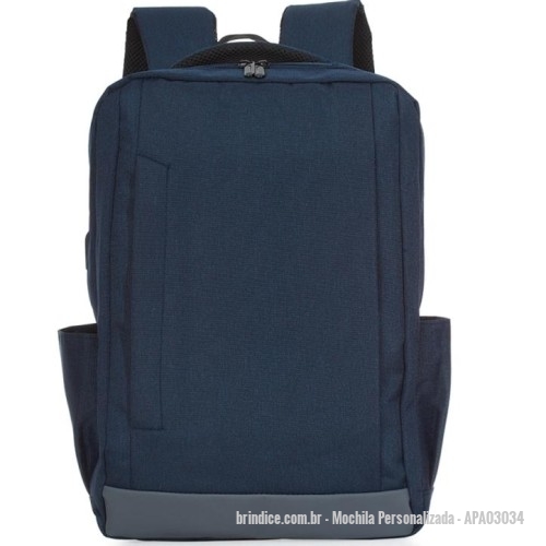 Mochila Personalizada - APA03034 - Mochila de nylon 27 litros com dois compartimentos, sendo o principal com bolso para notebook 15,6. Com divisórias internas para acessórios, a mochila possui bolsos laterais, suporte externo usb, duas alças de mãos e alça para engate em malas de viagem. Altura : 47 cm Largura : 37 cm Profundidade : 16 cm Medidas aproximadas para gravação (CxL): 24 cm x 16 cm Peso aproximado (g): 731 - 166728 - Portal de Brindes Personalizados | Guia Bríndice 38 Anos - Mochila