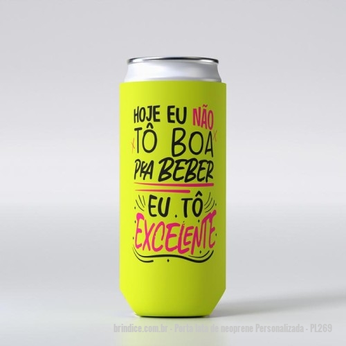 Porta lata de neoprene Personalizada - PL269 - Porta Lata de Cerveja 269ml, Confeccionado em NEOPRENE de 3 mm de espessura esse porta latas é feito para latinhas de 269ml. A alta qualidade do material faz com que este seja um brinde resistente, durável e a propriedade térmica do neoprene mantém a temperatura por curtos períodos de tempo - 166137 - Portal de Brindes Personalizados | Guia Bríndice 38 Anos - Porta lata de neoprene