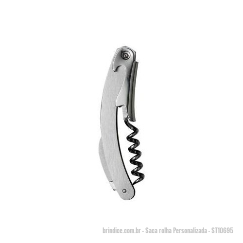 Saca rolha Personalizada - ST10695 - Saca rolhas metálico com lâmina de corte e abridor de garrafa. Dimensões: Largura : 2,7 cm Comprimento : 10,7 cm - 138477 - Portal de Brindes Personalizados | Guia Bríndice 38 Anos - Saca rolha