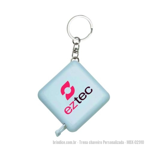 Trena chaveiro Personalizada - MBX-02910 - Fita métrica de 1 metro em plástico quadrangular, frente lisa e verso com botão (trava). Acompanha chaveiro. - 168477 - Portal de Brindes Personalizados | Guia Bríndice 38 Anos - Trena chaveiro