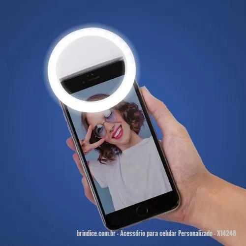 Melhore A Qualidade Das Selfies E Registre Momentos únicos Com Mais Luz E Brilho! Nosso Anel De Iluminação Para Celular, é Um “ring Light” Plástico, Mais Compacto, E No Formato “presilha” Para Encaixe. Ainda Possui Três Estágios De Iluminação Acionados Pelo Botão Superior. Acompanha Cabo Usb Para Carregamento.. Veja mais: Acessório para celular personalizado... acessório celular, brinde criativo, brinde para evento, brinde personalizado, ring light personalizada