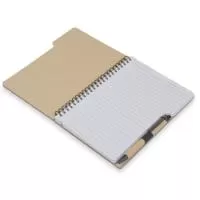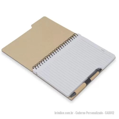 Caderno De Anotações Em Papelão Reciclável Com Suporte Para Caneta E Miolo De 70 Folhas Pautadas E Destacáveis. Acompanha Caneta Com Corpo Em Papel Reciclável Com Detalhe Em Plástico. No Topo Do Caderno Está Escrito Em Espanhol A Palavra Fecha (data). Veja mais: Caderno personalizado... #CADERNO
