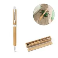 Sferográfica Em Bambu Com Clipe De Metal E Mecanismo Twist. Escrita Em Azul. Fornecida Numa Caixa Presente Em Bambu Com Tampa Deslizante E Capa Em Papel Reciclado. A Cor E O Resultado Da Impressão Nos Materiais Naturais Pode Variar Entre Produtos. 24 X 152 X 23 Mm. Veja mais: Caneta metálica personalizada... Caneta, Caneta em Metal, Caneta em Alumínio