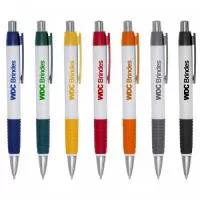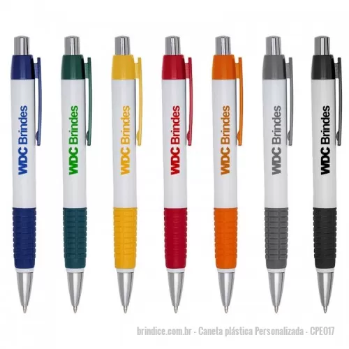 Caneta De Plástico Corpo Branco Com Borracha E Clipe Colorido. Detalhe Quadriculado Na Borracha. Veja mais: Caneta plástica personalizada...