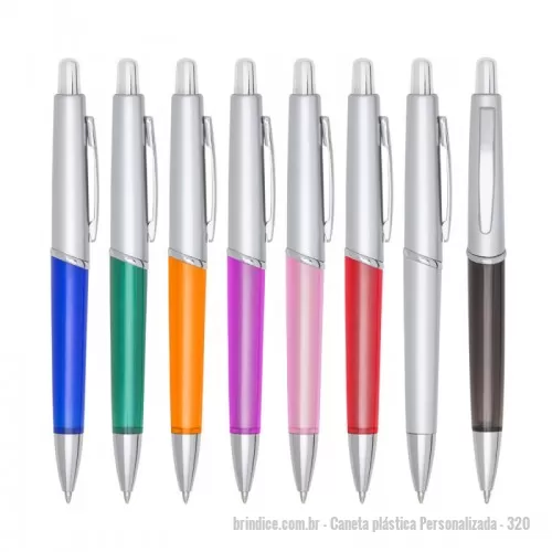 Caneta Plástica Prata Com Detalhes Coloridos Translúcidos.. Veja mais: Caneta plástica personalizada...