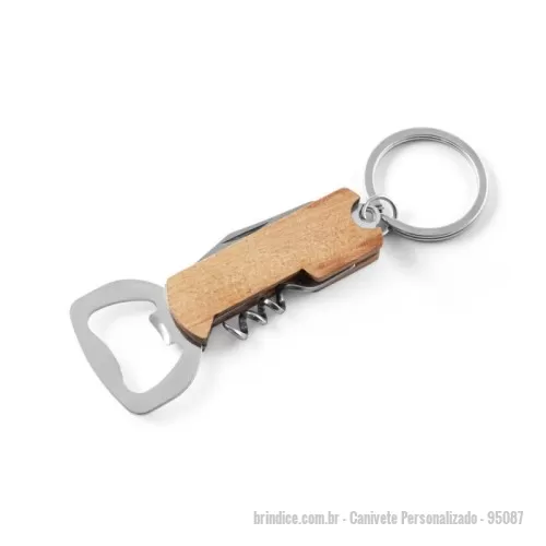 Chaveiro 3 Em 1 Em Bambu Com Abridor De Garrafas, Saca-rolhas E Canivete. A Cor E O Resultado Da Impressão Nos Materiais Naturais Pode Variar Entre Produtos.. Veja mais: Canivete personalizado... Canivete, 3 em 1, utensílio, saca rolha, abridor, faca