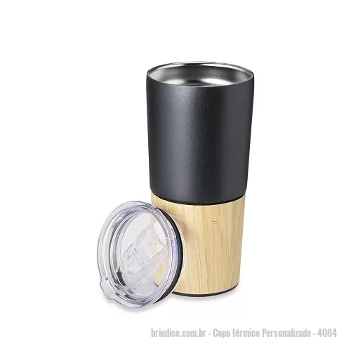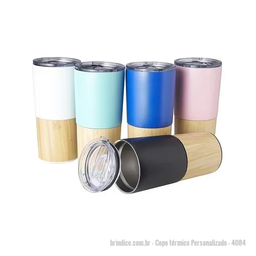 Copo Térmico De Inox 600ml Com Parede Dupla E Detalhe De Bambu. Tampa Com Acesso Ao Bocal E Trava De Segurança.. Veja mais: Copo térmico personalizado...