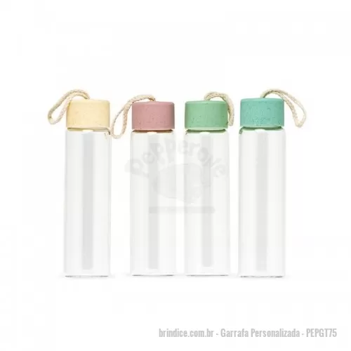 Garrafa Personalizada Com Capacidade Para 330ml Produzida Em Vidro Borossilicato. Possui Tampa Rosqueável Em Plástico Com Vedação Para Evitar O Vazamento Do Líquido E Alça De Algodão. Ideal Para Divulgar Sua Empresa Em Eventos Corporativos, Brindes Personalizados E Campanhas Promocionais.. Veja mais: Garrafa personalizada... Garrafa, Vidro, Personalizada