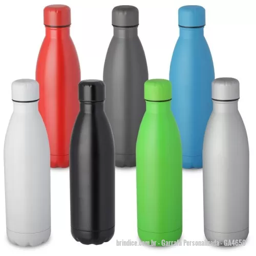 Garrafa Fosca Em Aço Inox Com Capacidade De Até 750 Ml. Tampa Rosqueável E Anel De Silicone Para Vedação. Design Com Frisos Na Tampa.. Veja mais: Garrafa personalizada... Garrafa, aço inox, bebidas, fosca