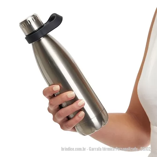 Garrafa Térmica Inovut - 510ml. Em Aço Inoxidável Com Parede Dupla, Tampa Com Vedação à Prova De Vazamento, Alça Em Silicone Para Transporte, Pode Ser Lavada Em Lava-louças, Conserva Gelado Até 24 Horas E Quente Até 12 Horas. Gravação Laser E Silkscreen. Tamanho 25,5x6,5(diam.) Cm. Veja mais: Garrafa térmica personalizada... Garrafa, Térmica, vedação, alça, parede dupla