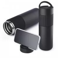 Garrafa Térmica Em Aço Inox Com Parede Dupla Isolada A Vácuo, Com Capacidade De Até 500ml. Conserva A Temperatura Quente Ou Fria, Com Alça E Suporte Para Celular Na Tampa. Apoio Para Mão Emborrachado E Tampa Rosqueável Com Anel De Silicone Para Vedação. Veja mais: Garrafa térmica personalizada... Garrafa térmica, garrafa térmica em aço inox, garrafa térmica com parede dupla isolada a vácuo, garrafa térmica com capacidade até 500ml,garrafa térmica com infusor, garrafa térmica com tampa rosqueável com anel de silicone, garrafa térmica com tampa para vedação, garrafa térmica que conserva líquido quente por até 12 horas e líquido frio até 18 horas, garrafa térmica para viagens, garrafa térmica para camping, garrafa térmica que mantém sua bebida quente ou fria por mais tempo