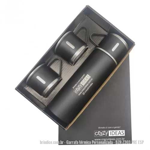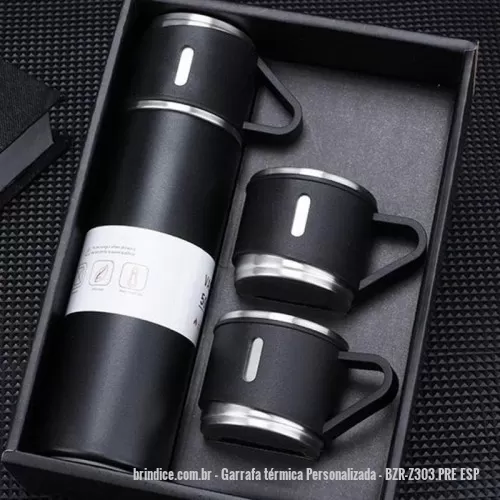 Kit Com Garrafa TÉrmica Em Metal Parede Dupla 390ml + 3 Canecas. Veja mais: Garrafa térmica personalizada... GARRAFA EM METAl personalizada, GARRAFA EM METAl promocional, GARRAFA EM META para brinde, GARRAFA EM META com logo, GARRAFA EM META para empresas