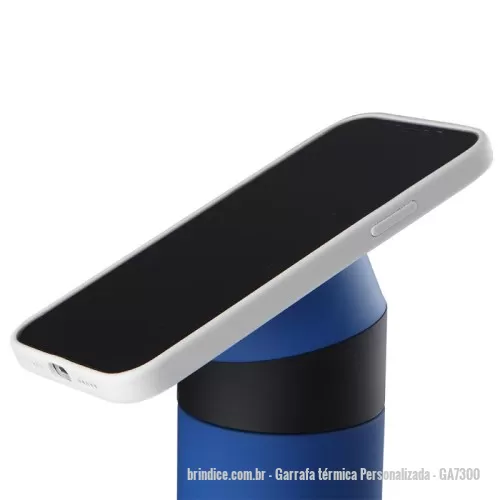 Garrafa Térmica Em Aço Inox Com Parede Dupla Isolada A Vácuo, Com Capacidade De Até 400 Ml. Tampa Rosqueável Com Anel De Silicone Para Vedação. Com Apoio De Silicone Para O Celular Na Tampa.. Veja mais: Garrafa térmica personalizada... Garrafa, garrafa térmica, inox, garrafa inox