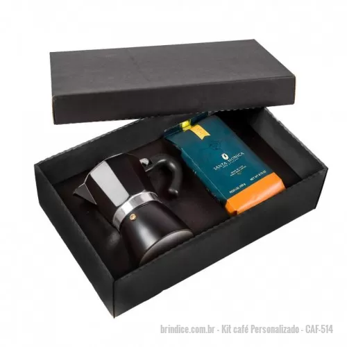 Kit Café Com Cafeteira. Produtos Presentes Nesse Kit: 01 Cafeteira Italiana Preta E 01 Café Gourmet Torrado E Moído 250g.. Veja mais: Kit café personalizado...