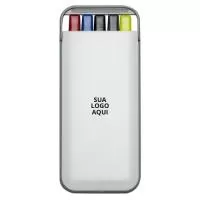 Kit 5 Em 1 Branco Em Estojo Plástico, Contém Canetas Com As Cargas: Azul, Preto E Vermelho; Marca Texto Amarelo E Lapiseira.. Veja mais: Kit caneta personalizado... caneta, caneta personalizada, kit caneta, caneta brinde, caixa caneta, canetas brinde personalizado