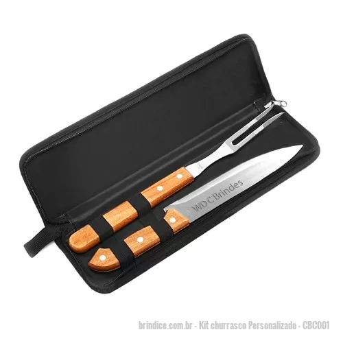 Conjunto Para Churrasco Com Duas Peças Em Estojo De Nylon Com Ziper. Contendo Faca E Garfo Com Cabo De Madeira Marrom. Tamanho Estojo 34 X 8,5cm. Veja mais: Kit churrasco personalizado...